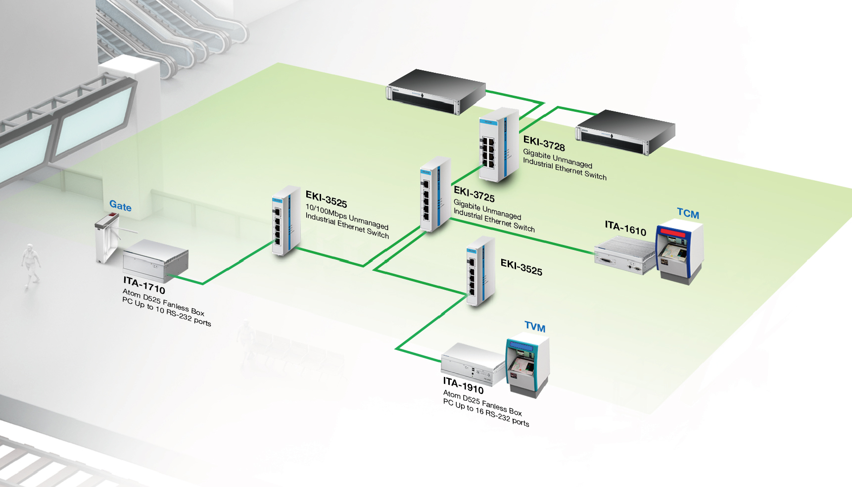 ▌▌項(xiàng)目 研華的ITA-1710在ITA系列產(chǎn)品中在中國(guó),歐洲和其他地區(qū)的大都市自動(dòng)票價(jià)收集系統(tǒng)(AFC)中發(fā)揮了重要作用。ITA-1710滿足了城市地鐵和火車站的大量需求,并在中國(guó)北京取得了巨大成功,涵蓋了從售票機(jī)(TVM)到自動(dòng)門機(jī)(AGM)的各種應(yīng)用。在銷售團(tuán)隊(duì)的努力下,研華與系統(tǒng)集成商北控和廣電運(yùn)通建立了深厚的關(guān)系,并贏得了鐵路一號(hào),二號(hào)和八號(hào)線的改造工程。在高峰時(shí)段,這些操作員必須為他們的AFC應(yīng)用程序配備一個(gè)穩(wěn)定且易于維護(hù)的系統(tǒng),以便管理和維持穩(wěn)定的通勤流量。
